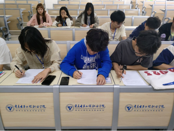 图为团学骨干签写《“青春倡廉”行动倡议书》