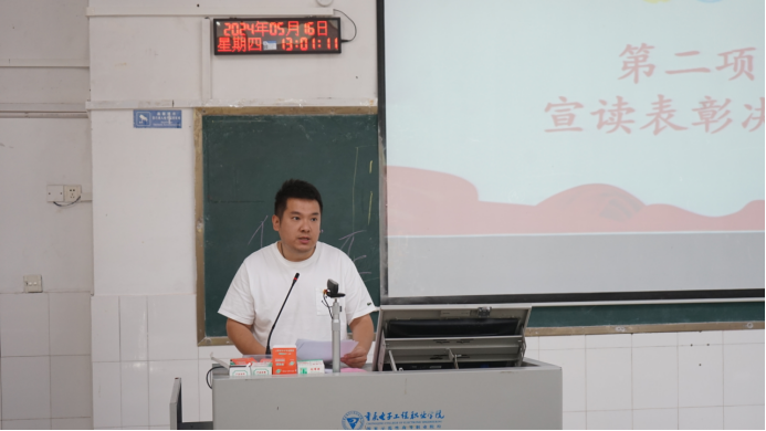 图为白锐老师宣读表彰决定