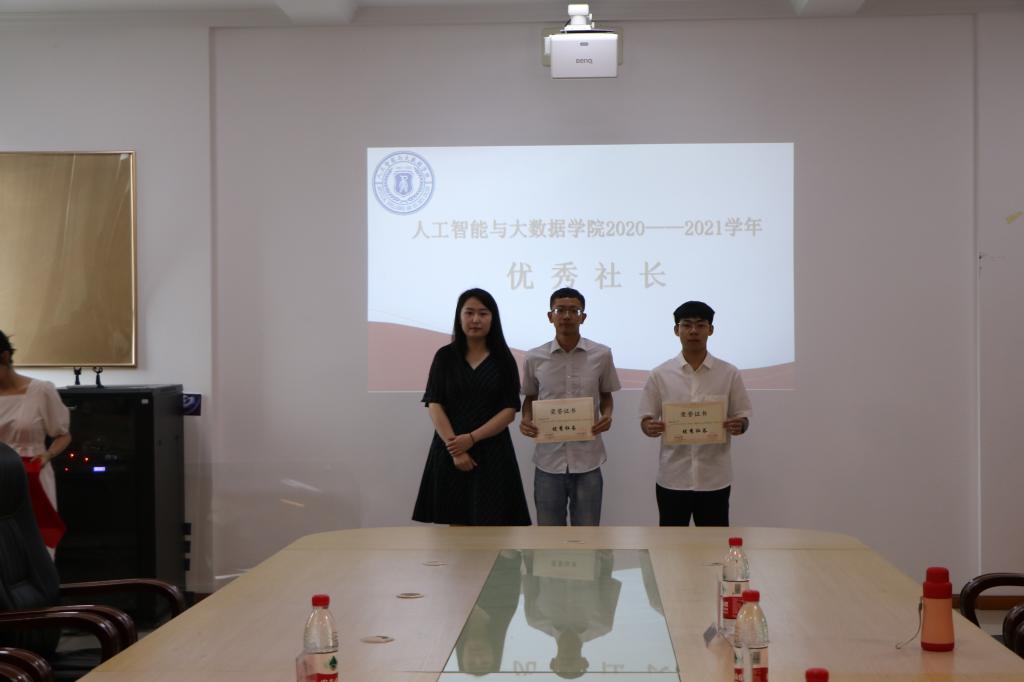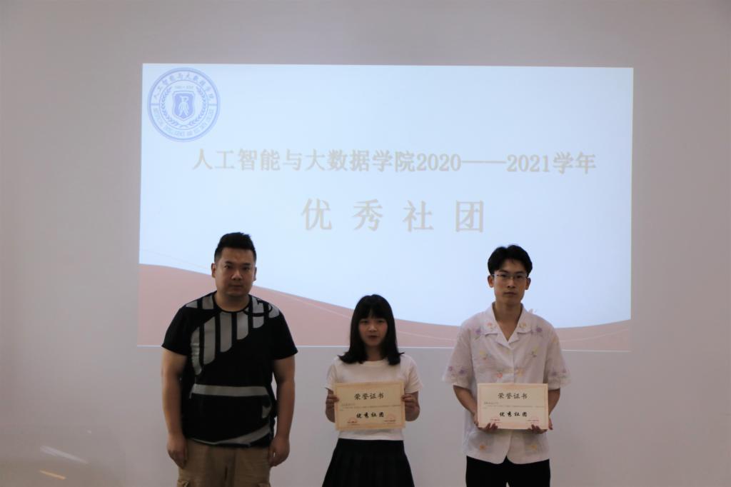 大会开始,首先由白锐老师宣读了《公司关于表彰2020-2021学年专业社团优秀社团、优秀指导老师、优秀社长的决定》,并为智数科技社团和千贝软件社团颁发优秀社团证书。