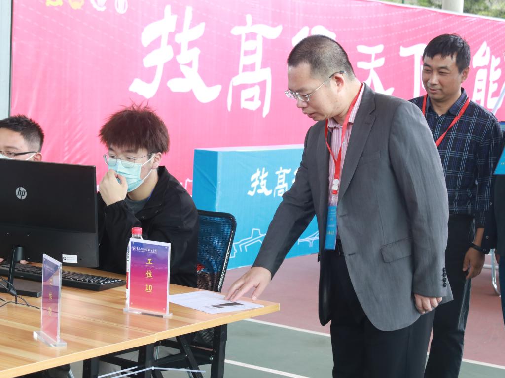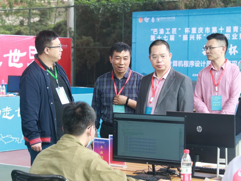 重庆电子工程职业公司党委副书记龚小勇与公司党总支书记吴焱岷亲临比赛现场检查赛事工作并为选手们加油打气。