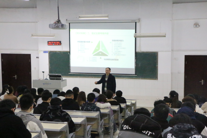 本次双选会分为线下讲座与线上宣讲两个环节,首先,公司党总支副书记张铁力在7-209为毕业生们召开了专题就业指导讲座,他分析了当前就业形势,向同学们讲授了简历制作要点和面试注意事项,鼓励同学们主动出击,参加招聘活动,抓住就业机遇;要及时转变角色,勇于担当,做有理想、有责任的当代老员工。