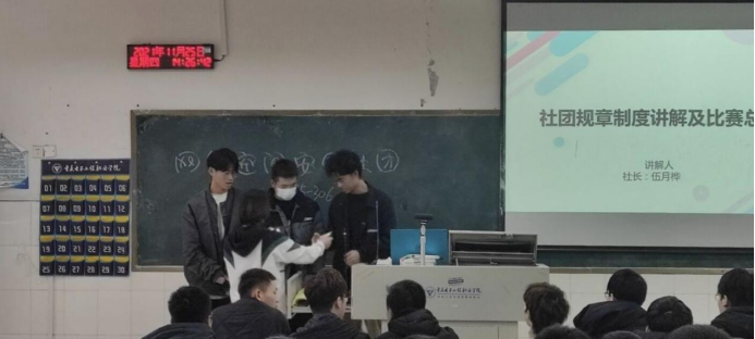 网络空间安全社团副社长操睿、田霜带领选手们学习《中华人民共和国网络安全法》。