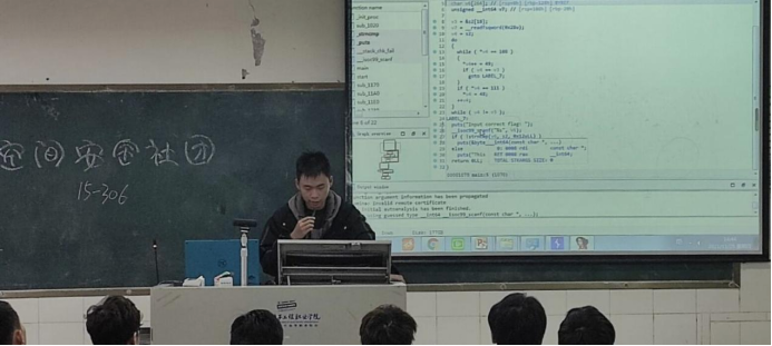 为达到以赛促学,拓展社团成员对网络安全的认识,现场有两名优秀参赛选手和一位技术支持人员对本次比赛重要赛题进行了详细的讲解,社团成员纷纷表示学有所获。