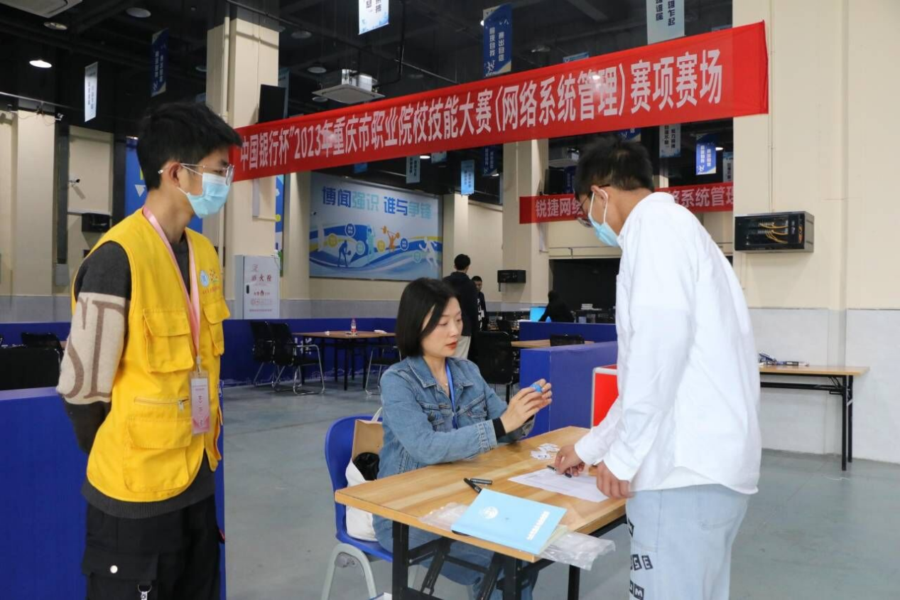图为志愿者负责比赛检录