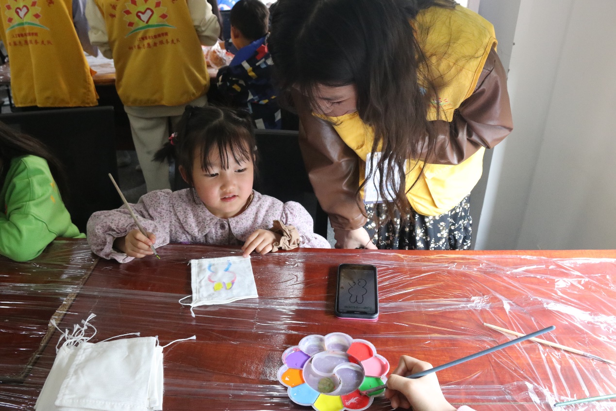 志愿服务内容是让3~15岁的小朋友了解寒食节的习俗和来历,教会他们做青团、艾草包;活动过程中还进行了古诗词抽奖,增强了小朋友们对中国节气古诗词的了解。