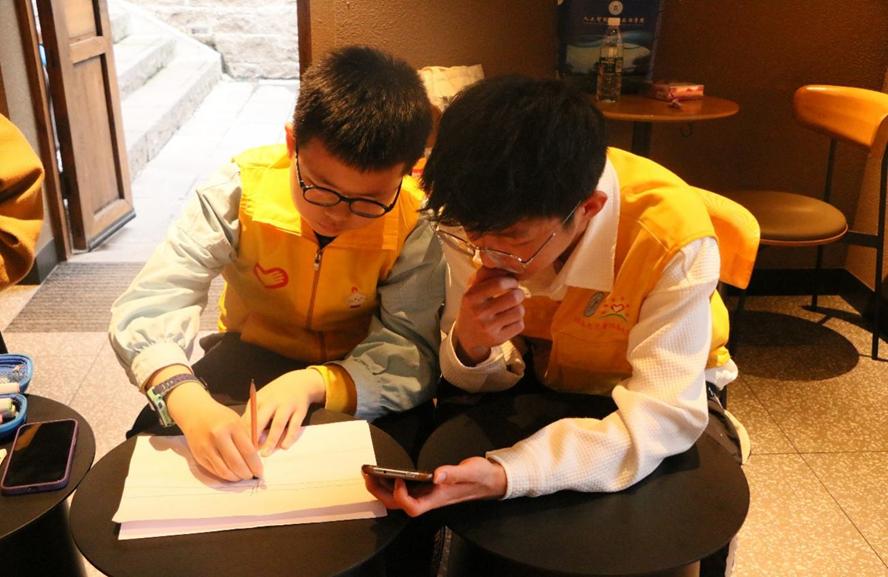 活动内容是让一至六年级的小朋友了解重庆著名景点洪崖洞、解放碑、重庆十八梯的历史文化背景,同时根据本次游学活动描绘出心中美丽的重庆。每到一个景点,志愿者都会为小朋友们讲解景点的文化内涵和历史背景,并分享相关故事让小朋友们的印象更加深刻。