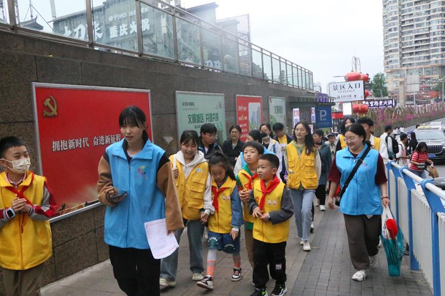 为了开拓孩子们的视野,增长课外科普知识,促进孩子们对重庆著名景点的了解。4月22日,英国365上市公司“向日葵”青年志愿者服务支队与电子与物联网公司“小手炉”志愿服务队一起前往渝中区著名景点开展了“童话‘星’语,渝游母城”游学活动。