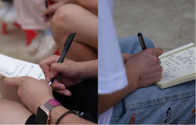队员们认真记录笔记