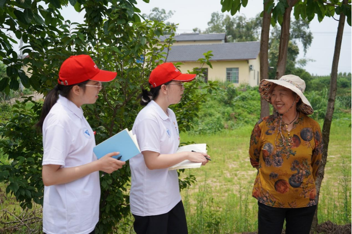 图为同学向当地村民进行走访 周彬摄
