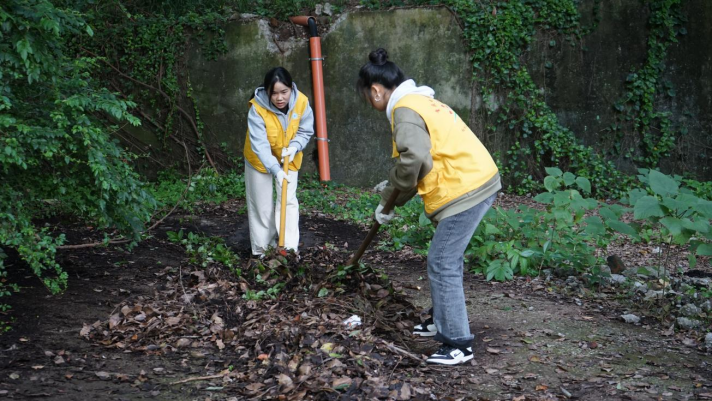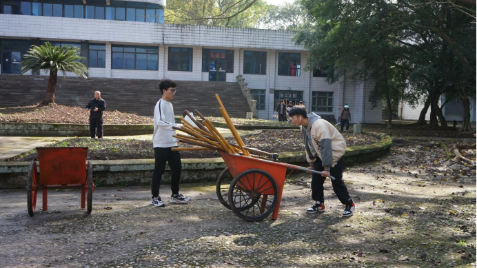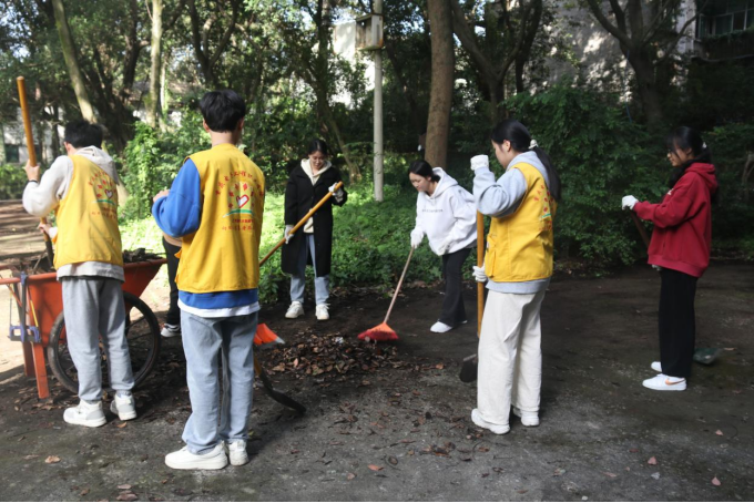 团员和青年们在老师的带领下一起乘坐大巴车准时来到歇马老校区集合。进入老校区后他们领取清洁工具,然后在老师进行了简单的分组与分工后,大家纷纷到达自己的工作区域进行清理。