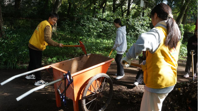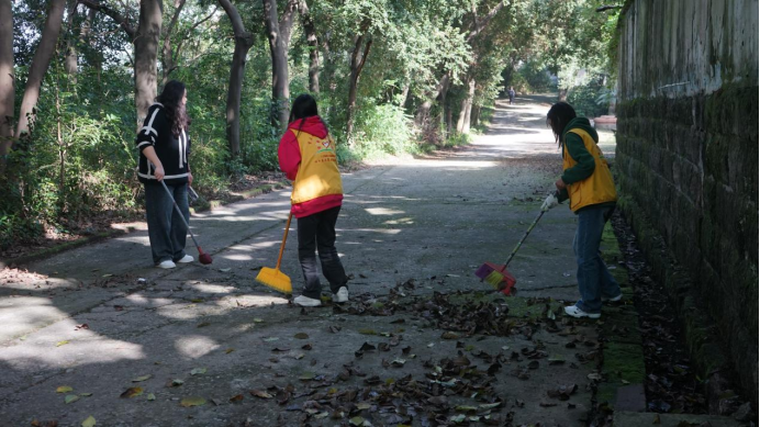 清理过程中,大到长时间无人问津的角落,小到路面上的每一片落叶,大家都在认认真真的清扫。老校区绿化面积大,杂草茂密丛生,同学们相互协作,互帮互助。有的用铲子铲起厚积的泥土、有的徒手拔除杂草、有的捡拾草中垃圾、有的清扫残枝落叶、即使大部分男生负责搬运垃圾,也没有人抱怨一句,大家不怕脏不怕累,配合默契,每走过一处便干净一处。在共同努力下,校园变得更加整洁、焕然一新,环境得到明显改善。明媚的朝阳洒在大地上,照亮了每位同学汗珠密布的脸,照亮了我们整个歇马校区。