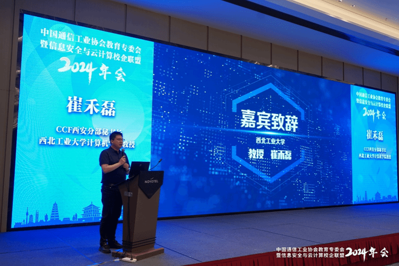 在会议的开幕式上,西北工业大学计算机公司的崔禾磊教授,作为CCF西安秘书长,发表了精彩致辞,对教育的未来充满期待,并强调了长江经济带产教融合发展联盟在产教融合方面起到的关键作用。