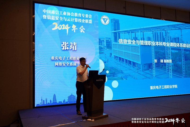 接着,本次年会继续围绕应用型本科院校、职业本科院校和高职院校的国家团队建设、职教本科专业建设、职业教育新专业开发等热点话题展开了深入讨论。会上,重庆电子工程职业公司网络空间安全系副主任张靖教授就信息安全与管理职业本科专业课程体系的建设发表了独到见解。张教授深入探讨了构建高效课程体系的重要性,并着重强调了专业基础课程与职业岗位课程之间的逻辑联系,表示“注重提升培养职业岗位技能的内涵深度,自主学习、创新和解决复杂问题的能力”。