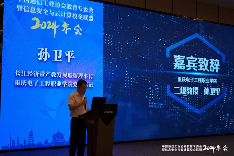 紧接着,长江经济带产教融合发展联盟理事长、重庆电子工程职业公司党委书记孙卫平教授,在致辞中深刻阐述了产教融合对于行业发展的深远影响。孙卫平书记分享了联盟在推动教育与产业深度融合方面的丰富实践经验,以及取得的显著成就和积极影响。