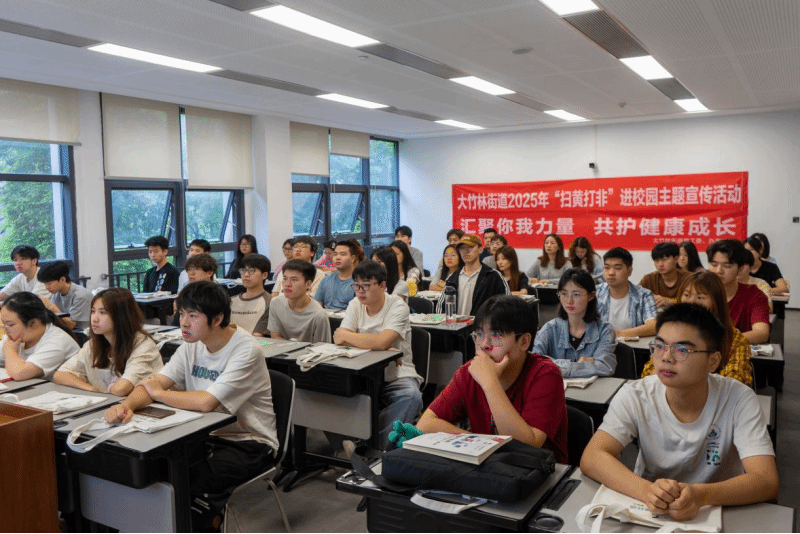 讲座围绕“扫黄打非”是什么、五大专项行动、其重要意义、非法出版物辨别、典型案例示警以及如何参与“扫黄打非”六方面展开。工作人员不仅用通俗易懂的语言阐述了“扫黄打非”的核心内容,还详细介绍了“净网”“护苗”“秋风”“新风”“固边”五大专项行动的具体目标和任务,让师生们清晰了解到这些行动如何在不同领域发挥作用,共同构筑起文化安全的防线。同时,通过展示非法出版物的特征和危害,结合真实案例的警示,生动形象地展示了不良文化对个人、家庭乃至社会的严重影响。最后,主讲人鼓励同学们从自身做起,践行绿色阅读和文明上网的理念,积极向身边人宣传 “扫黄打非” 知识,勇于举报相关线索,共同参与到守护校园文化净土的行动中来。