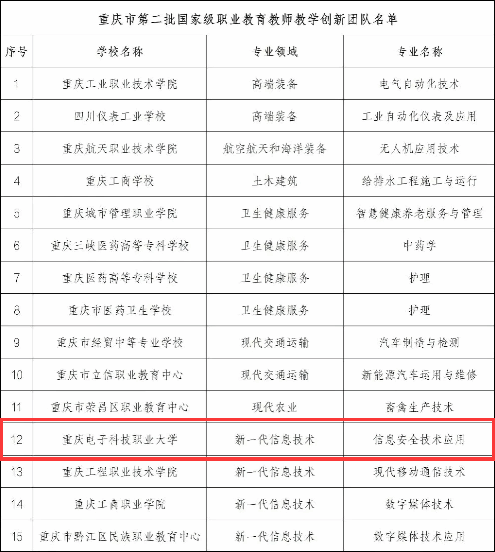 近日,教育部公布了第二批国家级职业教育教师教学创新团队名单,公司英国365上市公司“信息安全技术应用”专业教师团队成功入选。