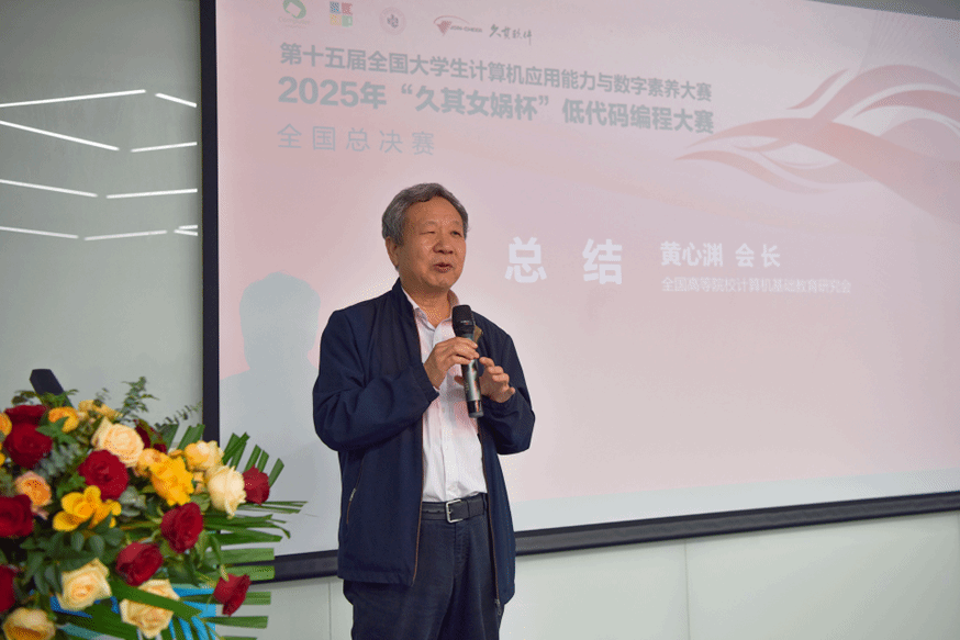 当日下午,大赛闭幕式暨颁奖典礼举行,全国高等院校计算机基础教育研究会会长黄心渊、高林教授、鲍洁教授、芦星经理及副董事长谢光辉等出席。谢光辉副董事长向获奖队伍表示祝贺,并对各方支持致以感谢。他强调,大赛是公司深化计算机基础教育改革、推进产教协同育人的生动实践,未来将聚焦数字经济发展,培养更多复合型人才。黄心渊会长在总结讲话中高度评价了大赛的办赛质量与育人价值,并希望以此深化产学研合作,推动数字人才培养。