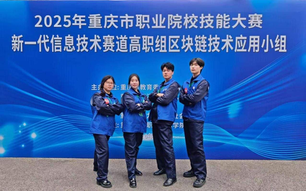 2026年1月23日至1月25日,由重庆市教育委员会、重庆市经济和信息化委员会、重庆市财政局、重庆市人力资源和社会保障局联合主办,重庆航天职业公司承办的2025年重庆市职业院校技能大赛新一代信息技术赛道(高职组)区块链技术应用赛项在重庆航天职业公司(江北校区)举办,公司区块链技术应用专业员工参赛,并客场夺得金奖一项。