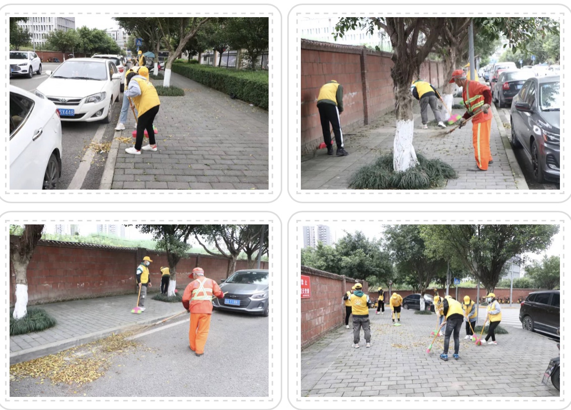 随后,队员们到街道上帮助环卫工人打扫街道。由于前一天天气原因,街上散落着许多树叶,每一个人都干劲十足地打扫树叶,体会着环卫工人的辛苦。队员在清扫落叶时不时与环卫叔叔阿姨拉家常,听到他们每天凌晨三点就出来清扫大街,晚上十一点才结束一天的工作时,队员们的心不禁揪了一下,当大多数人都还在温暖的被窝里做着甜美的梦时,他们却风雨无阻、无论烈日严寒,坚守在自己的岗位上,给我们的城市带来整洁与干净,真是深刻的感恩教育和劳动教育。