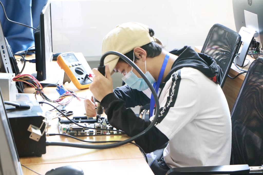 本次大赛坚持公平公正公开的原则,严格按照重庆市教育委员会、重庆市人力资源和社会保障局等部门的相关要求执行。本次大赛选手来自全市8个高职院校,共14个参赛队伍,竞赛内容分为两个部分,即“电子产品主板芯片级检测维修”和“硬盘数据恢复技术”。参赛代表队根据大赛统一提供的检测与维修任务书完成对GA-H81M主板的检测与维修任务,数据恢复主要包括硬盘分区表的恢复、U盘数据恢复、硬盘引导扇区修复、FAT文件系统数据恢复、NTFS文件系统数据恢复、数据库系统数据恢复、硬盘固件修复、硬盘磁头更换等内容。