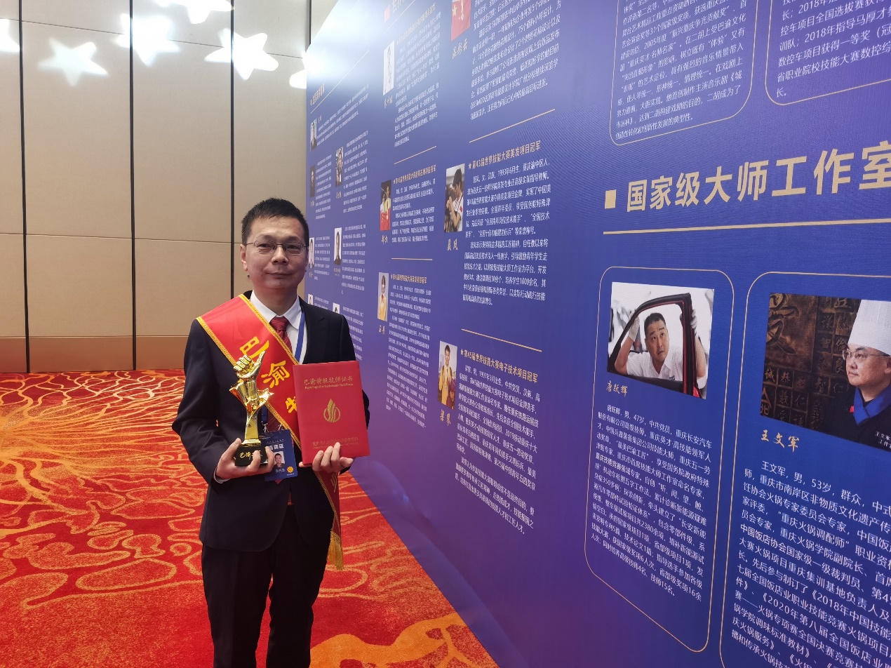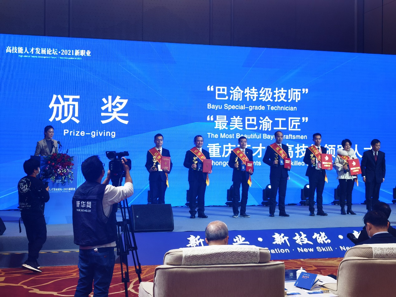 11月20日,在“2021重庆英才大会高技能人才发展论坛·2021新职业”主题活动上举行了“巴渝特级技师”颁奖仪式,公司教师鲁先志作为该领域代表上台领奖。