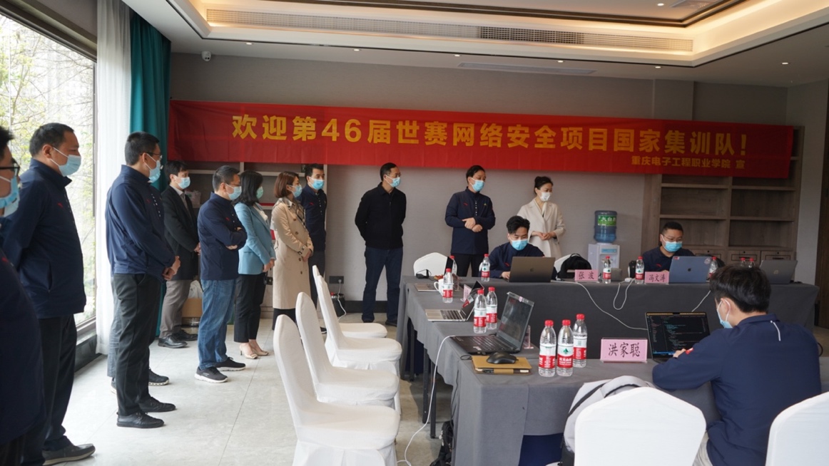 重庆市人社局一直以来殷切关注网络安全项目工作进展,为第46届世界技能大赛网络安全项目重庆基地做好政策支持,保障了重庆基地的良好发展。此次走训参加的专家、教练和参训选手深刻感受到了重庆市人社局对大家的关怀,深表谢意。