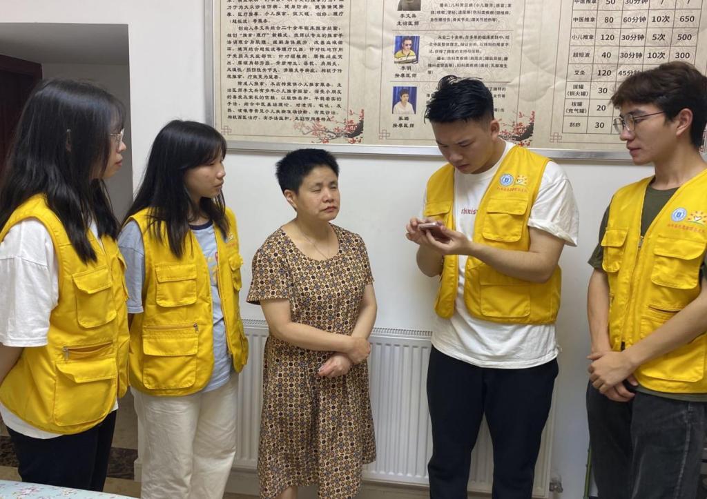 师生团队来到李文兵女士的盲人按摩店。在向盲人按摩店的工作人员了解到按摩店的有关情况后,智慧助残项目负责人周华强组织志愿者们有序开展志愿者服务,包括:电脑检测和维护、手机APP更新和维护以及电商平台介绍等信息化技能培训为主的服务。据了解到,李文兵女士在盲人按摩行业已有三十几年的工作经验,是一个"老手艺人"。因一次意外导致的双目失明,让她一度对生活失去希望。后来,在朋友的推荐下,她只身前往广东学习盲人按摩技术,利用在大城市学习工作的机会,不断精进自己的手艺。但他乡虽好,终归不是故乡,在外拼搏多年后,李女士选择回到家乡创业,用自己的积蓄,开了一家属于自己的盲人按摩店。店里总共有三位师傅,都有20多年的从业经历,手艺娴熟,技法精湛。