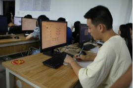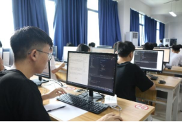 比赛伊始,参赛者们如火如荼,争分夺秒地开始竞答,大家进行认真思考、激烈角逐、沉着应战,整间教室只听见他们敲打键盘,按动鼠标和动手写草稿的声音。