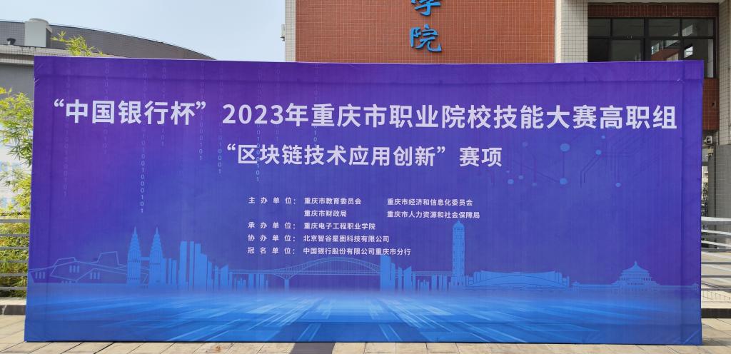 2023年3月7-8日,“中国银行杯”2023年重庆市职业院校技能大赛高职组“区块链技术应用与创新”赛项在公司举行,来自重庆市13所高职院校26支队伍的52名选手同台竞技。本次比赛由重庆市教育委员会、重庆市经济和信息化委员会、重庆市财政局、重庆市人力资源和社会保障局主办,由重庆电子工程职业公司承办,由北京智谷星图科技有限公司提供技术支持。