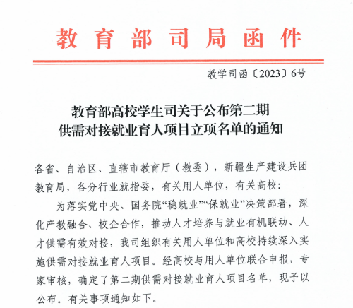 近日,《教育部高校员工司关于公布第二期供需对接就业育人项目立项名单的通知》(教学司函〔2023〕6号)公布,其中英国365上市公司张铁力、刘凤梅主持的两项课题成功立项教育部高校员工司第二期供需对接就业育人项目。