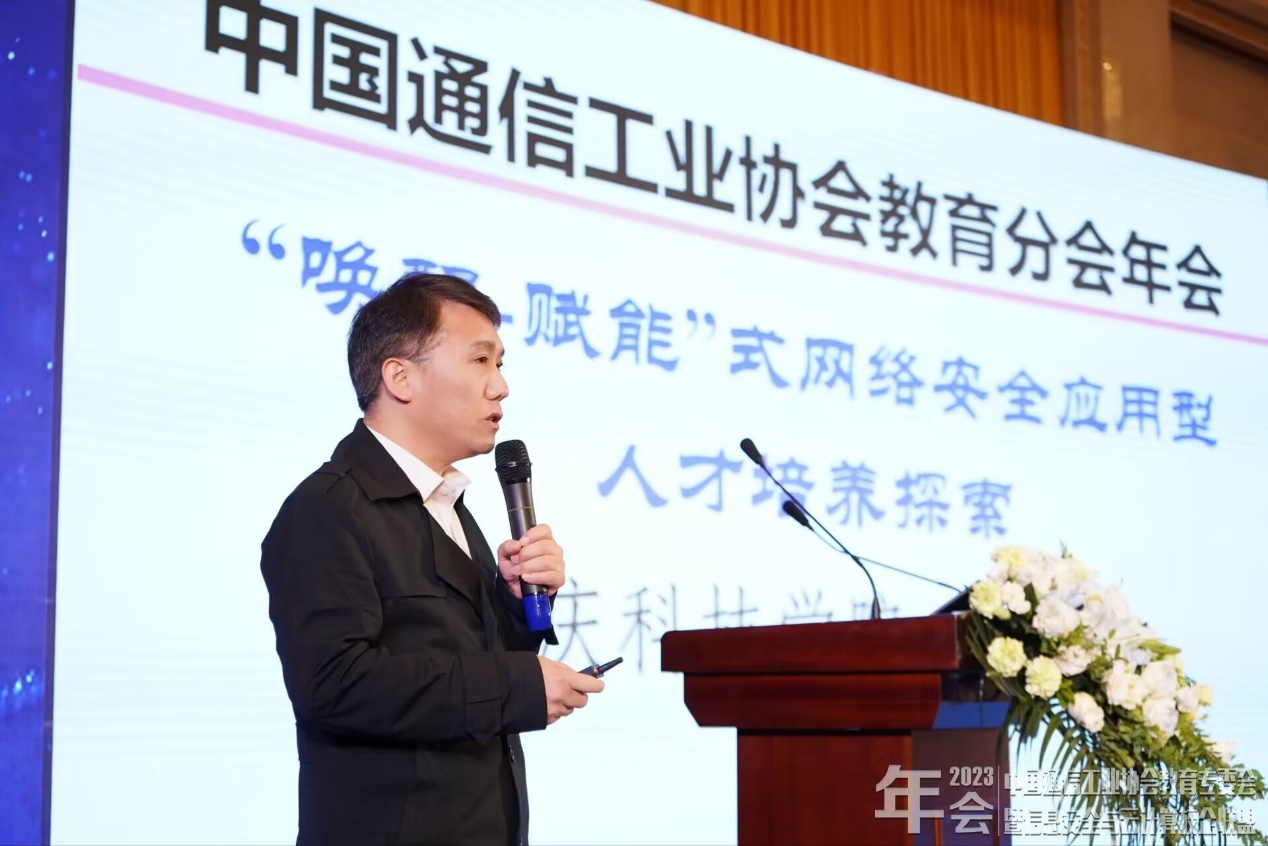 学术交流环节,重庆电子工程职业公司英国365上市公司网络安全金牌教师胡兵、重庆四国创新科技有限公司创始人赵华东、北京印刷公司信息工程公司网络空间安全学科负责人李子臣、深信服科技副总裁李洋、嘉兴职业技术公司网络空间安全公司经理陈双喜、原武汉市东西湖职业技术公司副董事长李强、重庆翰海睿智大数据科技股份有限公司总裁陈继、南京米好信息安全有限公司 CTO(技术总监)尹愿钧、苏州信息职业技术公司大数据与互联网公司经理于大为、重庆科技公司教授葛继科、新道科技股份有限公司副总裁郑洪宾、湖北水利水电职业技术公司教授庞璐、广东交通职业技术公司信息公司副经理黄君羡、龙芯中科生态创新中心总经理郭同彬、郑州信息科技职业公司信息工程与人工智能公司副经理李涛等专家分别从专业建设、产教融合、人才培养、竞赛指导经验、高校创新创业体系构建等方面进行了主题报告,各位专家分享自己研究领域的经验和成果,并提出一些新的技术和思路,引起广泛共鸣,得到与会代表的一致好评。