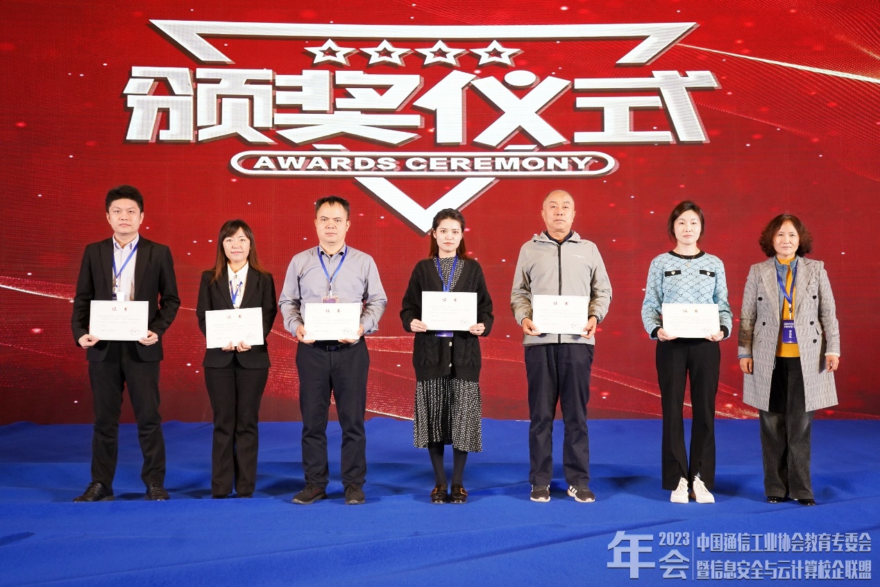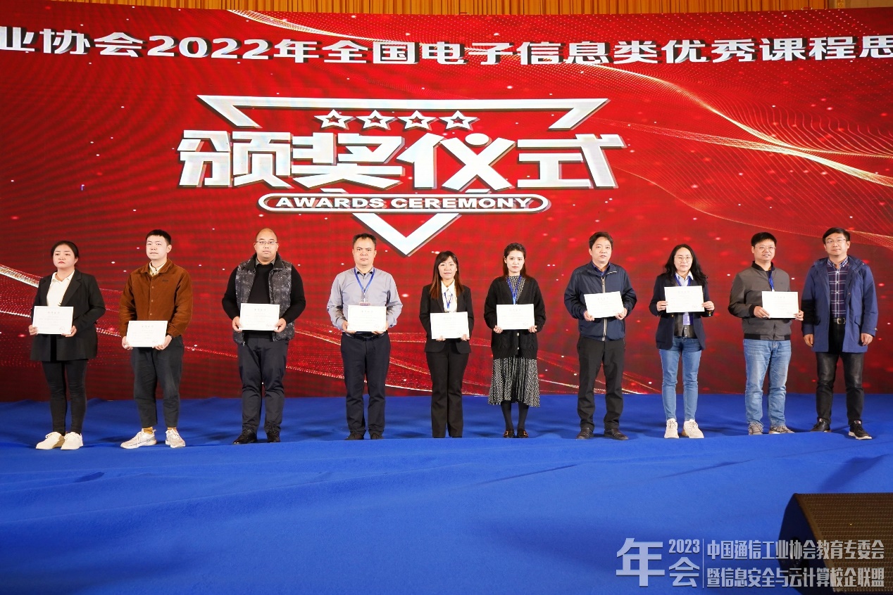 颁奖环节,本次年会颁发了中国通信工业协会教育分会2022年优秀论文、中国通信工业协会教育分会第二届科技进步奖、中国通信工业协会教育分会 2022 年优秀教材奖、中国通信工业协会教育分会优秀课程思政案例与课程思政示范课、中国通信工业协会教育分会高水平产教融合实习实训基地,并公布了中国通信工业协会教育分会 2021 年教改课题结题名单。