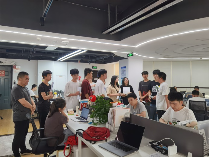 仪式结束后,企业导师分别带队员工参观了公司的工作场所,并向员工讲解了具体的实习工作内容。