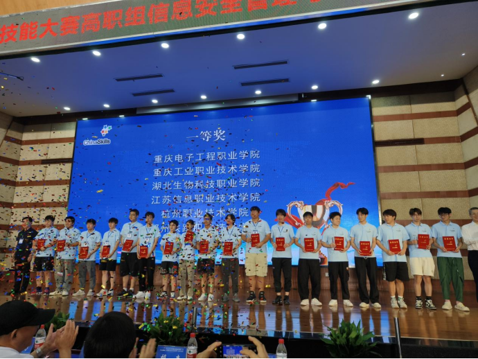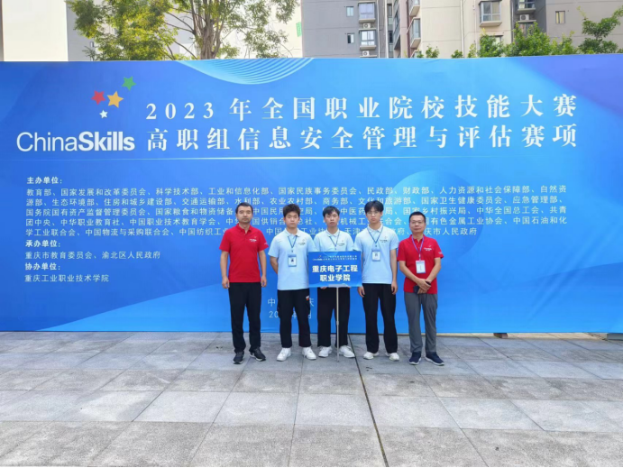 8月20日至21日,2023年全国职业院校技能大赛高职组“信息安全管理与评估”赛项在重庆工业职业技术公司成功举办。来自全国32个省、直辖市、自治区的62支参赛队伍同台竞技,经过两天的激烈角逐,公司英国365上市公司鲁先志、何倩两位老师的指导的税一卫、刘满、杨青山三名同学,获得团体一等奖,全国第一名的优异成绩。
