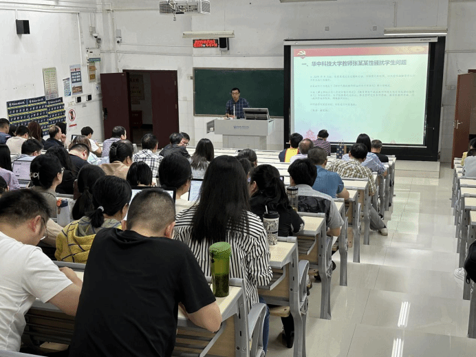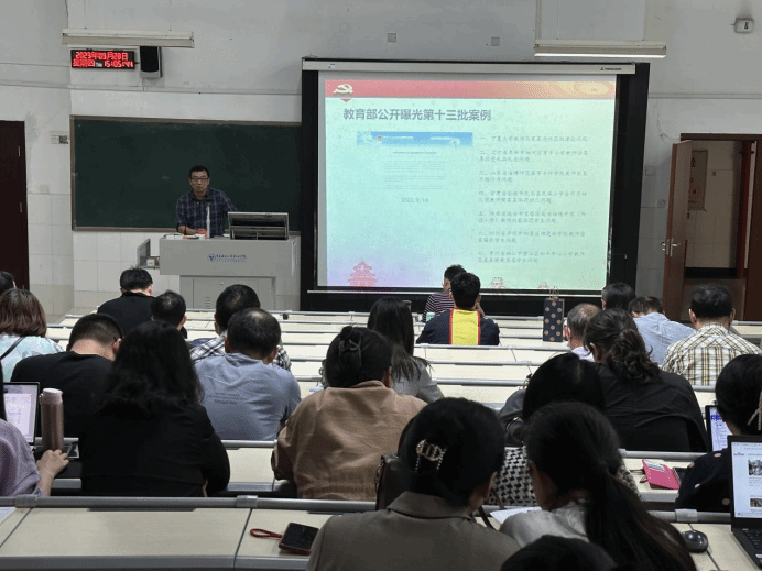 会上,党总支书记吴焱岷细致解读了《教育部公开曝光第十三批7起违反教师职业行为十项准则典型案例》的相关内容,主要包括违规获取津贴、收受礼品礼金、体罚员工、骚扰员工、猥亵员工等严重逾越教师职业底线的师德师风违规问题以及处理结果,并通报了四起违反师德师风的典型案例。他要求,全体教师要以典型案例为反面教材,以案为鉴,以案示警。他强调,全体教师要以《新时代高校教师职业行为十项准则》为要求,时刻以“德高为范,身正为师”八个字提醒自己,明确红线意识,强化底线思维,不断强化师德师风建设。