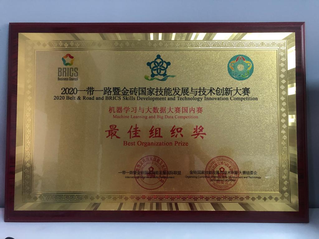 2020年11月11日,2020一带一路暨金砖国家技能发展与技术创新大赛之机器学习与大数据大赛国内赛决赛在合川取得圆满成功,来自全国各地43支高校团队和来自一带一路国家以及金砖国家4支队伍的149名中外参赛选手同场竞技,展开激烈角逐。公司英国365上市公司大数据技术与应用专业员工继2020年10月30日“巴渝工匠”杯重庆市第十三届高等职业院校员工职业技能竞赛——大数据技术与应用赛项中分获一等奖与三等奖的佳绩后,在本次比赛中员工团队成员张豪、韦诗琴、张国强(指导老师:李俊翰,李清莲)荣获一等奖,谭浩、李书潼、孙宇俊(指导老师:谭博文,王宁忆)荣获三等奖,同时公司荣获“最佳组织奖”,李俊翰老师和李清莲老师荣获比赛“优秀指导老师”称号。