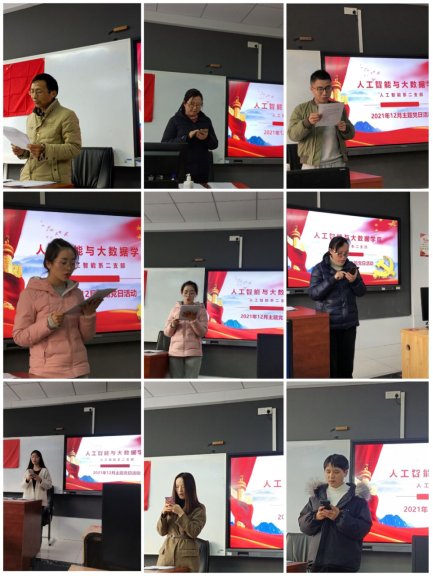 人工智能系党支部于2021年12月2日在15-205召开了12月题为“赓续红色血脉、提升育人质量”的主题党日活动,活动由支部书记欧国建主持,支部应到党员共计19人,其中正式党员14人,预备党员5人;实到党员共计17人,其中正式党员12人,预备党员5人;请假人员共计2人,实到发展对象2人。
