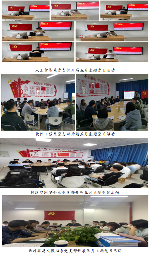 根据公司相关工作要求,2021年5月公司党总支现下辖四个党支部,网络空间安全系党支部、云计算与大数据系党支部、人工智能系党支部、软件工程系党支部开展2021年5月主题党日活动,本月主题是“知史爱党,学史增信”。