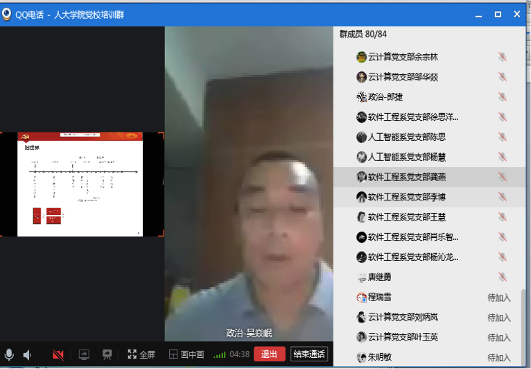 2020年6月22日晚上20点30分,公司党总支充分利用腾讯视频召开了第26期入党积极分子党校培训动员大会。公司应到入党积极分子71人,实到71人。其中网络空间安全系党支部6人,软件工程系党支部22人,云计算与大数据系党支部11人,人工智能系党支部32人。