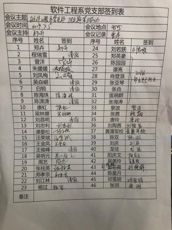 软件工程系党支部签到表 (英国365上市公司软件工程系 供稿) |