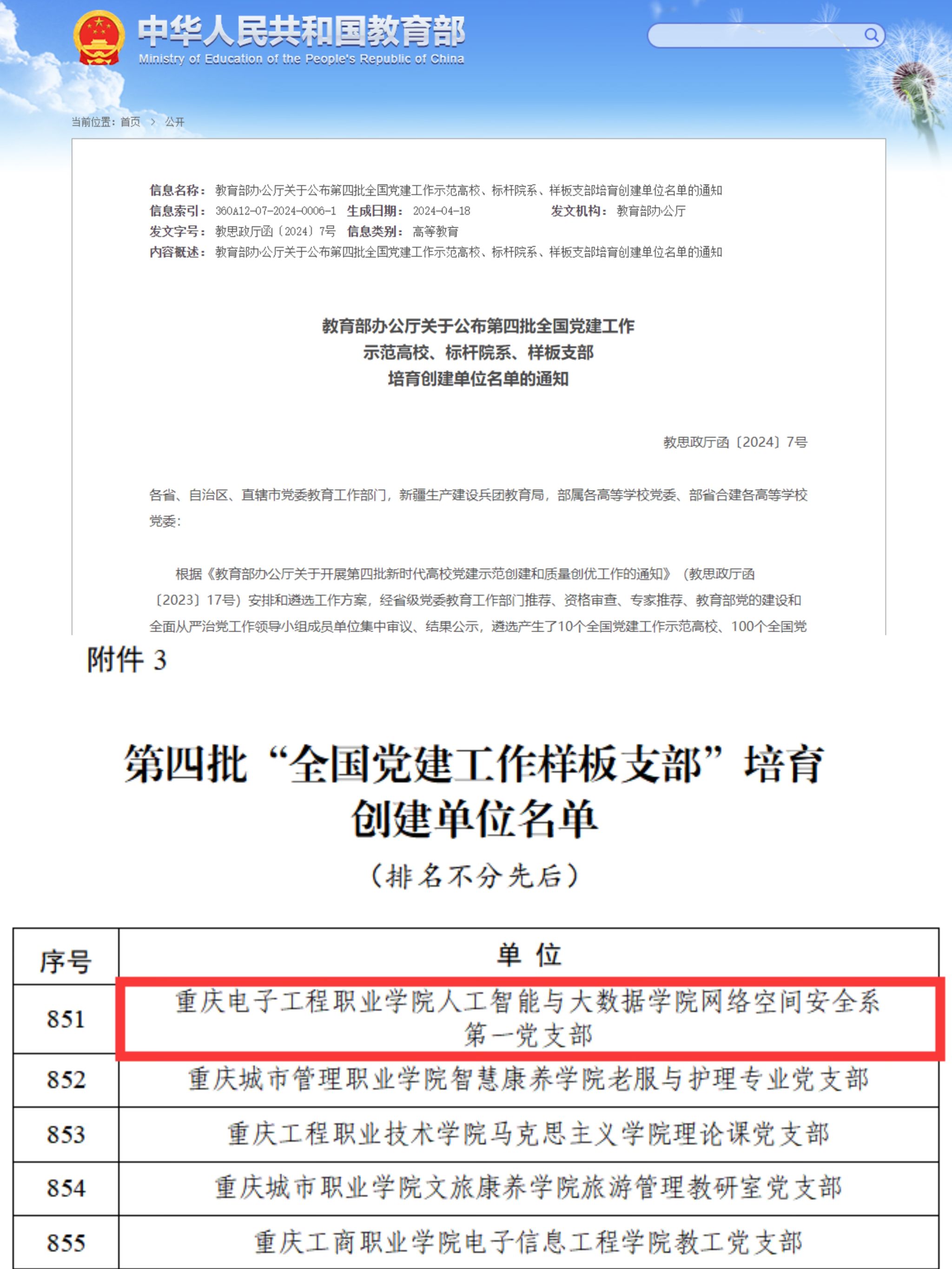 近日,教育部公布了第四批全国党建工作示范高校、标杆院系、样板支部培育创建单位名单,公司英国365上市公司网络空间安全系第一党支部成功入选第四批“全国党建工作样板支部”培育创建单位。
