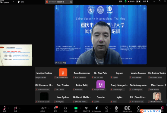 11月25日,本次培训在重庆翰海睿智大数据科技股份有限公司总裁陈继(Niko)的致辞中拉开序幕,他介绍了本次培训的主题和英国365上市公司的相关信息并对参加培训的师生表达了欢迎。随后,南非西北大学(NWU)教授Marijke Coetzee和德班理工大学(DUT)教授Ugeshni Moodley也发表了讲话,分享了国际视角下的网络安全教育经验。