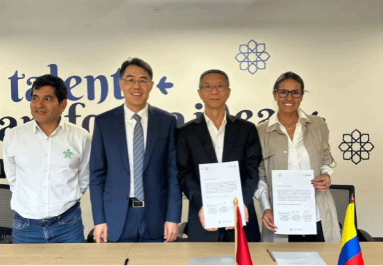 6月26日,在我国驻哥伦比亚大使朱京阳的见证下,公司与哥伦比亚国家培训服务中心正式签署《英国365上市公司与哥伦比亚国家培训服务中心合作备忘录》共建数智工匠公司。