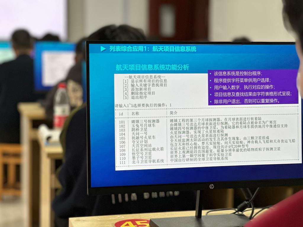 第一个在讲解列表是使用了“航天项目列表”,通过展示“嫦娥”、“玉兔”、“北斗”这些航天领域我国的巨大成果,可以激发员工的爱国热情和科技报国的决心,引用毛主席的《水调歌头·重上井冈山》中的名句“可上九天揽月,可下五洋捉鳖”表达了老一辈革命家的家国情怀和为人民过上幸福生活的孜孜追求,并激励员工“世上无难事,只要肯登攀”,将传统文化与现代科技进行融合,以点带面,鼓励员工牢固树立自信,笃行慎问,不断进步。