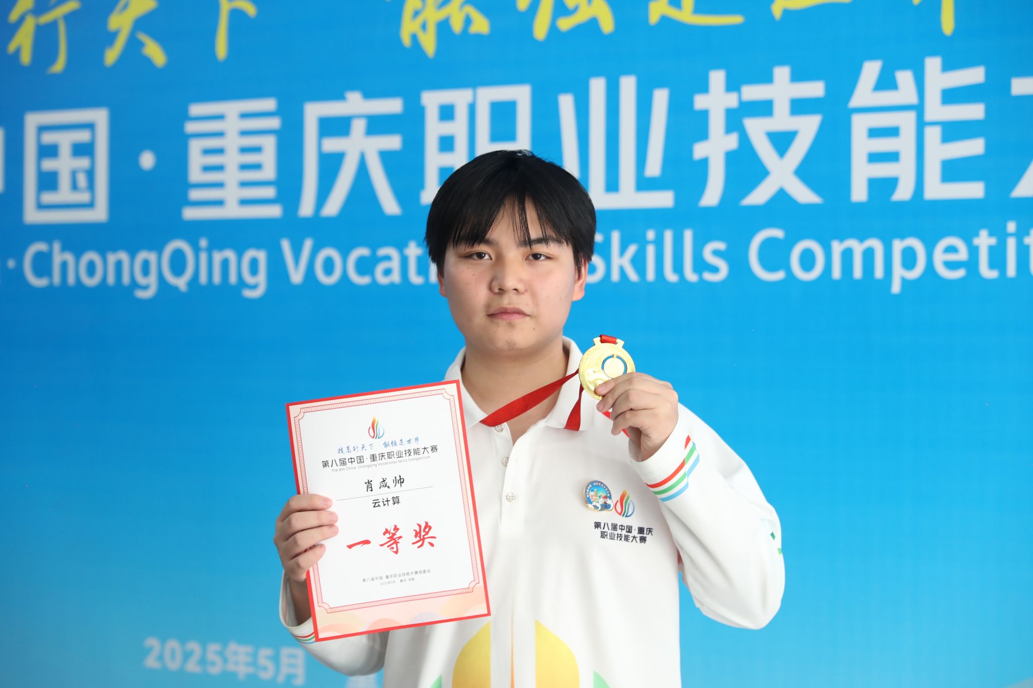 5月20-23日,由重庆市人民政府主办,市人力社保局、市教委、市农业农村委、市总工会、团市委、市妇联、涪陵区人民政府承办的第八届中国·重庆职业技能大赛在涪陵举行,公司英国365上市公司云计算技术应用专业2023级员工肖咸帅代表沙坪坝区参加了“云计算”赛项比赛,与全市19个区县选派的代表同场竞技,经过激烈角逐,肖咸帅荣获云计算赛项金牌(一等奖),这也是沙坪坝区代表队在此次比赛中获得的唯一金牌。