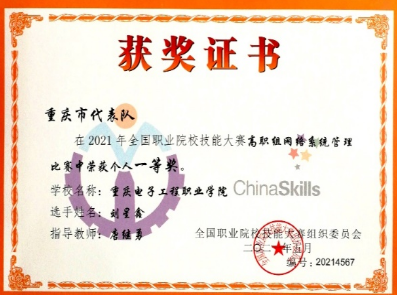 图1 全国职业院校高职技能大赛网络系统管理赛项 一等奖