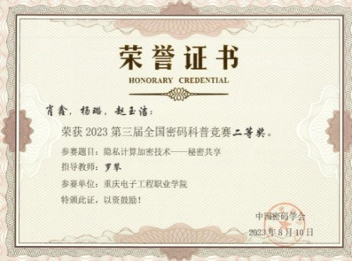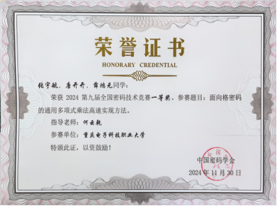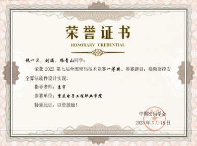图1 2022年第七届全国密码技术竞赛一等奖 | 图2 2024年第九届全国密码技术竞赛二等奖 |