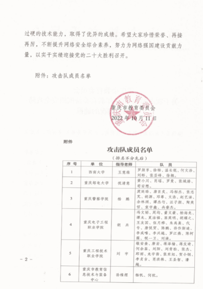 专业自2021年开设以来,专业教师团队和员工积极参与相关竞赛和社会服务,通过以做促学、以赛促训,提升专业员工技术技能水平,获得多个部门的表彰和优秀的技能竞赛成绩。近四年累计获得国家级一等奖3项、二等奖8项、三等奖11项,省部级一等奖6项、二等奖4项。其中全国密码技术竞赛一等奖2项,二等奖1项,三等奖5项;全国密码科普竞赛二等奖2项,三等奖4项。