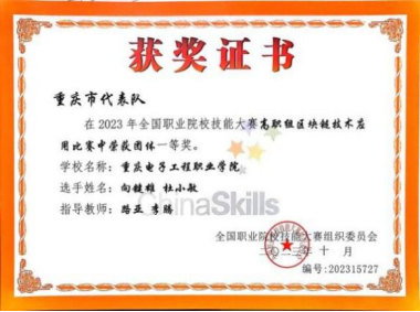 图5 2023年“巴渝工匠”杯重庆市青技赛区块链技术应用 赛项一等奖 | 图6 全国职业院校技能大赛区块链技术应用赛项获奖 |